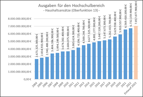 Die Ausgaben des Freistaats Bayern für den Hochschulbereich steigen – mittlerweile seit