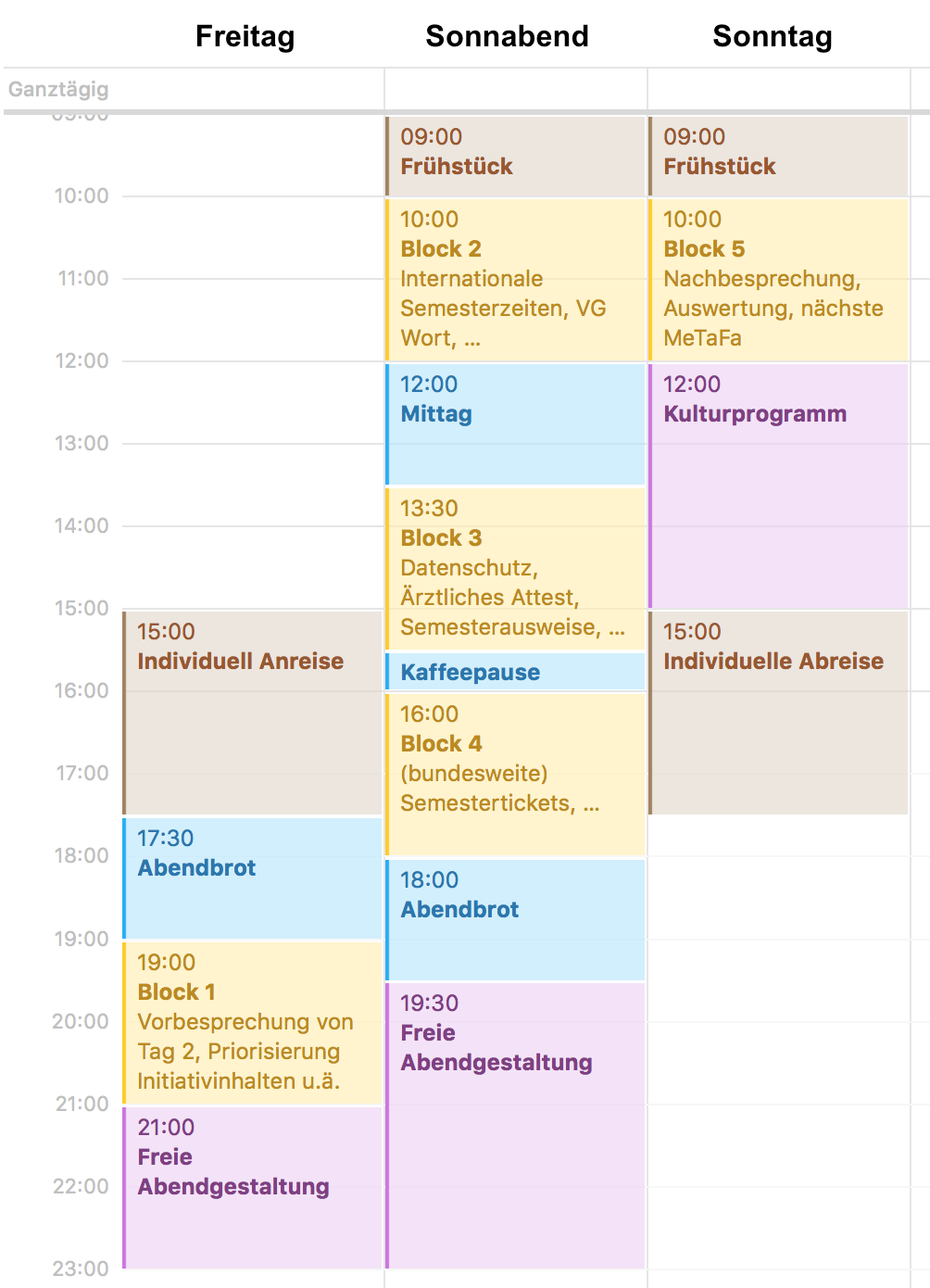Bedenkt bei der Anmeldung bitte auch, dass am Sonntag der MeTaFa die