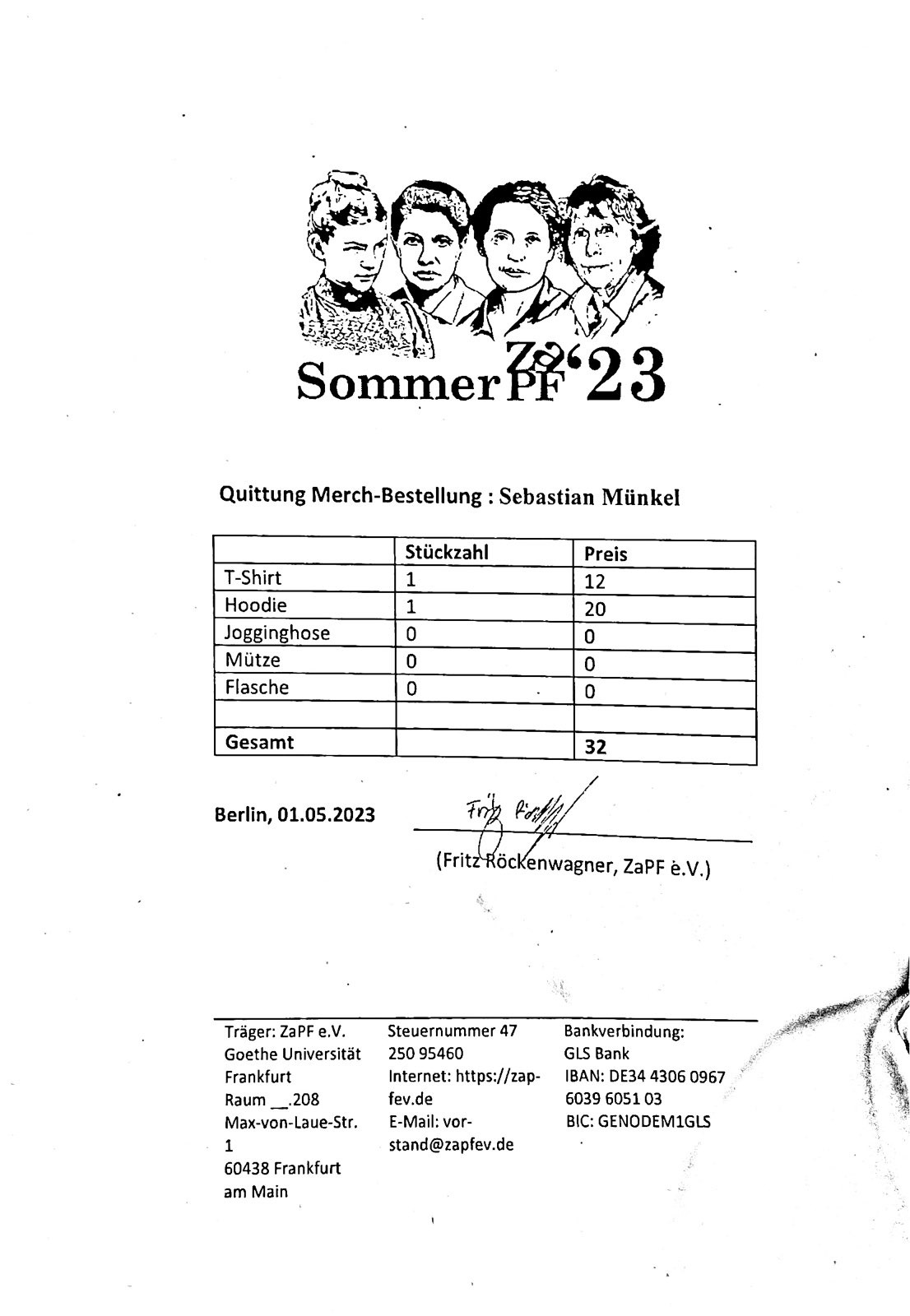 für eine Kostenrückerstattung der Nicht-Merch-Kosten. Könnt ihr mir