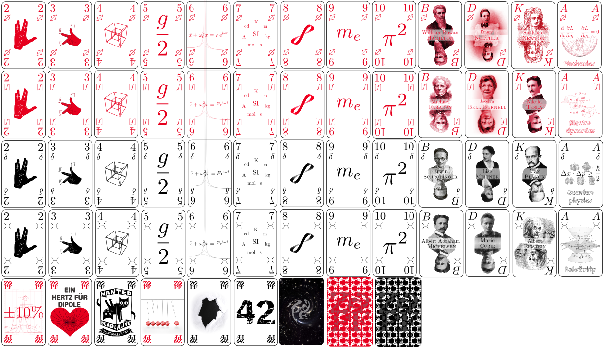 Hallo liebe ZaPFika, nach inzwischen 5 Jahren häufen sich die Anfragen nach einer Neuauflage des ZaPF-Kartenspiels. Daher Organisieren wir eine Neue Großbestellung. Das ZaPF-Kartenspiel ist ein Rommé Blatt (110 Karten (2x52 Karten + 6 Joker)) mit Physikbezogenen Bildern. Das ganze funktioniert so: - Bis zum 31. August habt ihr Zeit mir eure verbindliche Bestellung zu senden - Danach: Wir holen das Endgültige Angebot ein und wissen was die Karten endgültig Kosten werden. - Mitte September wir geben euch Bescheid was ihr uns Schuldet - Danach Zahlt ihr auf das Konto ein, das wir dafür Verwenden - Ende September lassen wir die Karten Drucken - Mitte/Ende Oktober: Wir lassen die Karten nach Hamburg Liefern - 10.November-13.November Ihr bekommt die Kartenspiele auf der ZaPF in Hamburg Die Kosten richten sich natürlich an der Anzahl von Bestellungen. Aber unser Erwartungsrahmen liegt irgendwo bei 4,5 Euro. Bitte versucht vor Ort zu sammeln und als Fachschaft zu bestellen. Wenn es für euch keine Möglichkeit gibt, die Karten selbst auf der ZaPF in Hamburg abzuholen, gebt bitte Bescheid und wir schauen dann, wie wir das machen. Eure Bestellung sollte Enthalten: - Anzahl der Kartenspiele - Abholende Fachschaft - Name der Ansprechperson vor Ort Eine grobe Übersicht, wie die Karten aussehen, findet ihr im Anhang. Liebe Grüße Vicky und Tobi